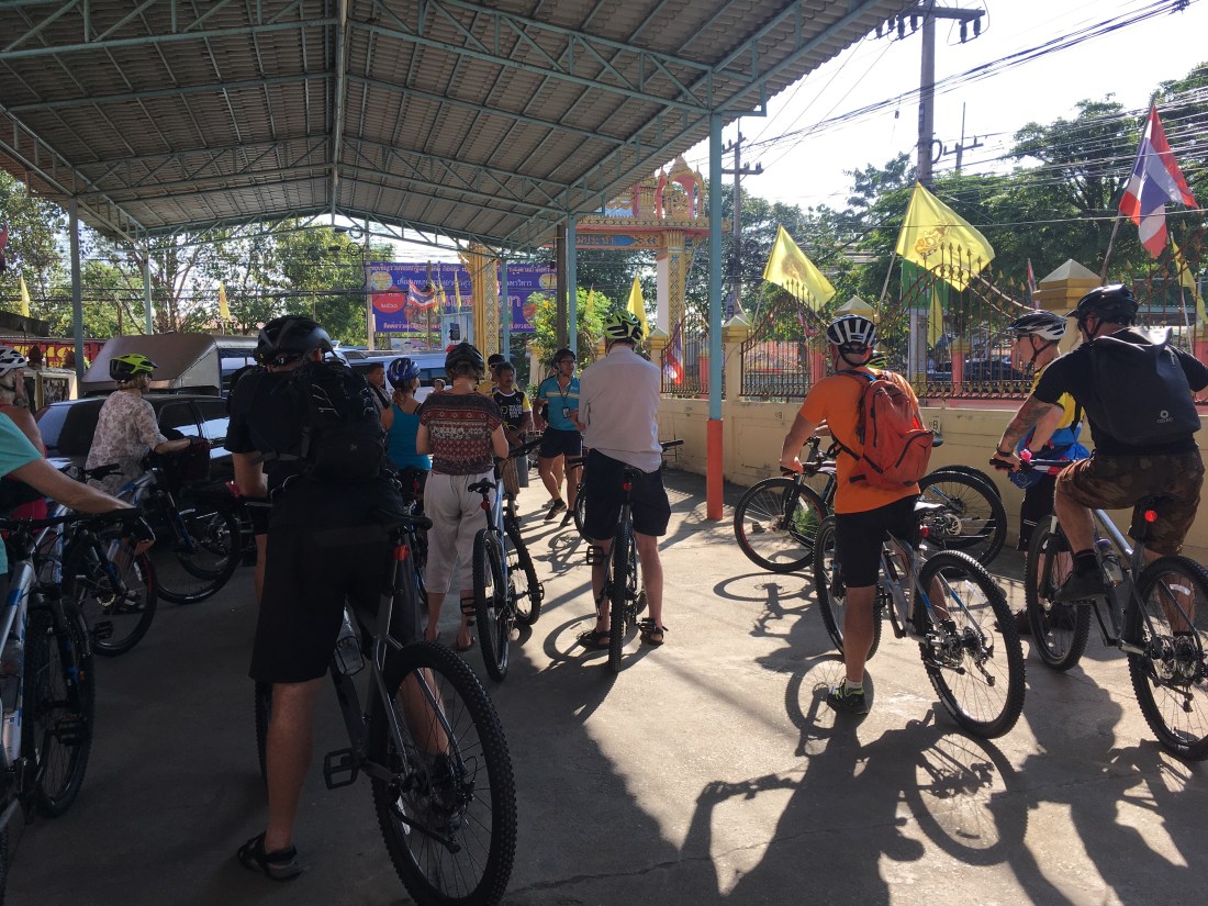 We finished our days riding around 2pm, in time for lunch at a local roadside restaurant. The food was nice but when we were all lead to the toilets to change into long trousers (a requirement to visit the temples in), most of us wished we hadn’t seen the food preparation area or the piles of washing up on the floor π€’. Nevertheless, we chose to ignore it and hope we didn’t suffer for it later.