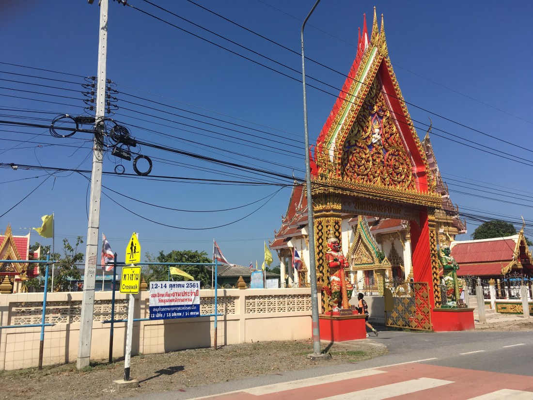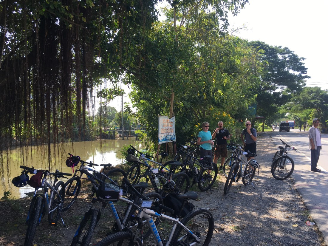 We cycled for a couple of hours and racked up approx 50km, taking in the scenery as we went. So many temples by the roadside and some amazing shrines. It was a bit bizarre and not quite what I expected, many new, modern apartment blocks and private estates, alongside shanty town (think Heath Robinson) style dwellings, which I had expected. The variation was both odd and interesting. Temperatures reached 37degrees at one point, with high humidity and we were all grateful for the rest stops the team had put on for us. We were greeted on three occasions along the way with refreshments, fresh fruit, nuts, biscuits and cold drinks. My favourite were the mini bananas, who knew they even exisited!