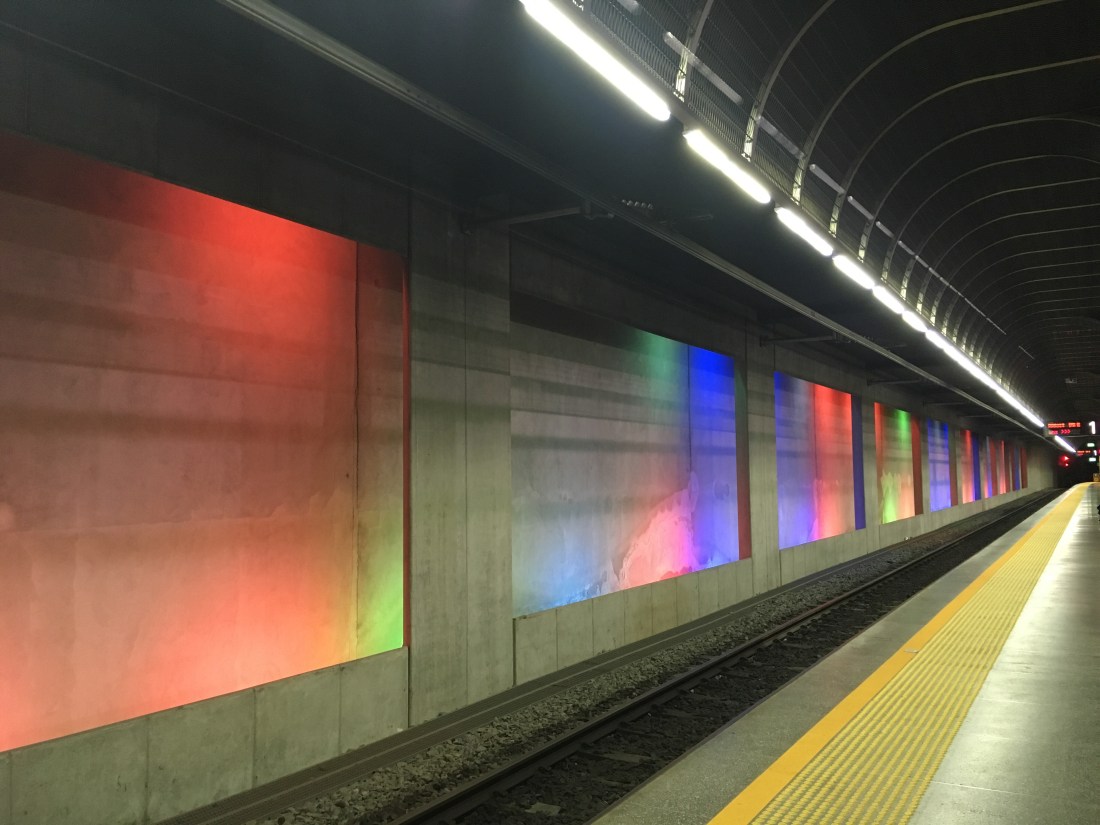 Inside the Britomart train station at night