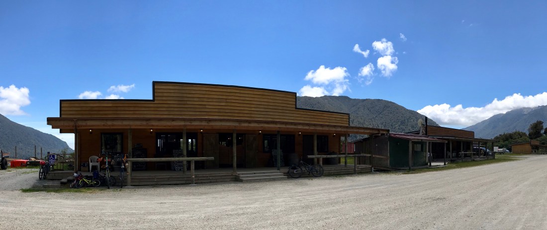 Bloke decided he wanted to do a longer section the next day. So I dropped him off at the trail marker in Kumara and we agreed to meet 4 hours later, back at the lake (the phone reception on the West coast is pretty non-existent). It was billed as the most technically challenging section of the four stages of the trail with 700m of climbing in it and I thought it might be a bit much for my knee to cope with yet, so I waved him off, feeling a bit gutted to not be going. I got to our meeting point at the lake at 3.15pm thinking I’d sit and read my book for a bit, to find him already sitting there, he’d smashed it out in 2.5hours! The guidebook suggested 6hrs, the local bike shop said 4hrs (the local literature said it was technically demanding – it was if you were on a road bike, it was a gravelled path!! Gutted π€. On a positive note the trail went deep in to the bush and really showcased the rain forest. I passed a really cool wild camp called Trappers Rest. Another section ended at a brand new saloon. Yes you read that right: a wild west saloon called Cowboy Paradise! It had swing doors, American barstaff and pistol range over the road where you can put a few rounds in the targets. The saloon serves food and drink and acts as accommodation for people cycling the full length of the trail over a few days. It is quite incongruous, oddly new and slightly ridiculous, but also kinda cool π :bloke)