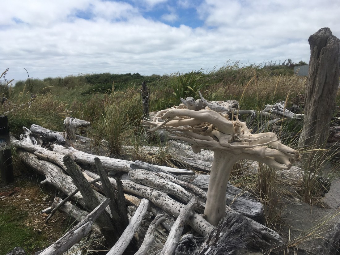 On to the next campsite and in to Hokitika. “a cool little town” is their by-line, and they are not wrong, it really is very cool. With grey sand and rocks on the beach, fierce seas and more driftwood than I’ve ever seen in one place before, this place has an interesting and arty feel about it.