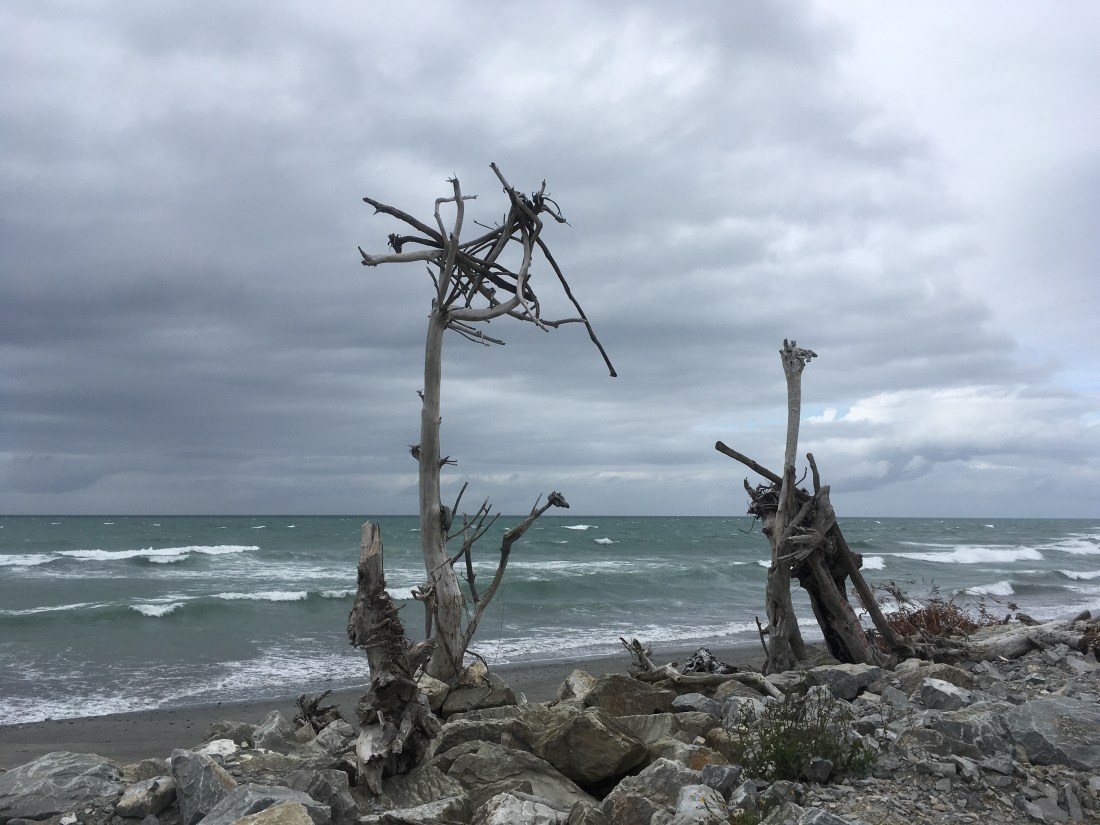 On to the next campsite and in to Hokitika. “a cool little town” is their by-line, and they are not wrong, it really is very cool. With grey sand and rocks on the beach, fierce seas and more driftwood than I’ve ever seen in one place before, this place has an interesting and arty feel about it.