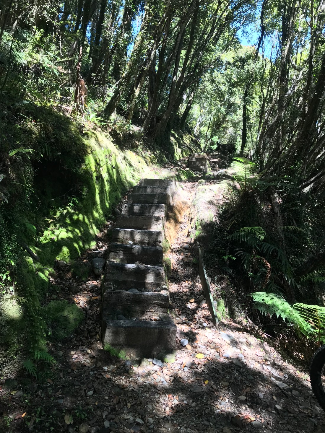 Green 1 or 2 “easy” in NZ. can be more like an old school welsh Red grade. That means potentially, some exposure, some roots, some off camber “not very steep” i.e 100 vertical meters over 1km in a climb. Also: Should be dual track, mostly isn’t. (I dreaded meeting someone coming at me in the opposite direction on these trails when there is barely room for me! It finally happened today but fortunately with a couple of runners at a wide section of the grade 3 trail : chief blogger)