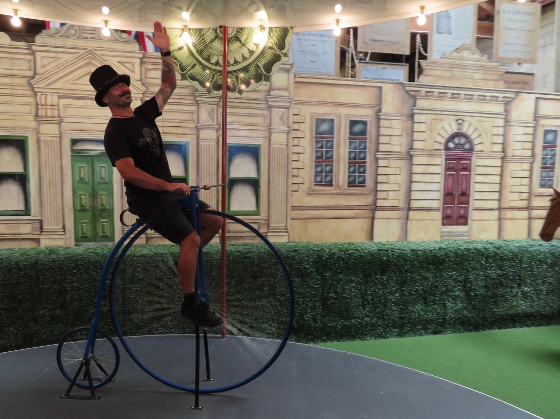 We visited Whitestone City, which offers a replica Victorian streetscape and interactive attractions, such as a schoolroom, complete with slates and a schoolmistress. We were given the tour by a local lady, wearing full Victorian garb, whose grandfather had made the journey to new pastures from Scotland, as one of the first settlers. In its time Oamaru was the 7th largest city in New Zealand, due to the huge amount of wheat production in the area. It was a large port town, with a somewhat boisterous reputation, mainly due to the average age in the town being quite young ( I think she said 29). Interestingly, the percentage of male to females were 50/50, so I guess the women were as bad as the men, (possibly due to the amount of brothels in town? (I didn’t see any!?!?! :bloke)).