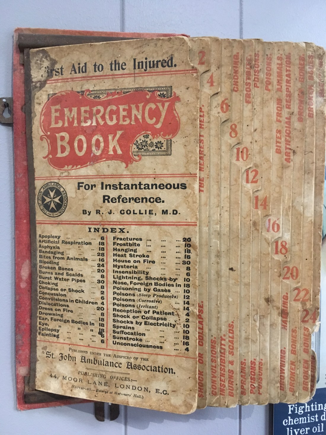 Not only was the Chemist well stocked, but it had some very useful advice on hand. (According to the index, it is reasonable to assume people often found themselves accidentally hanging by a rope around the neck…. :Bloke)