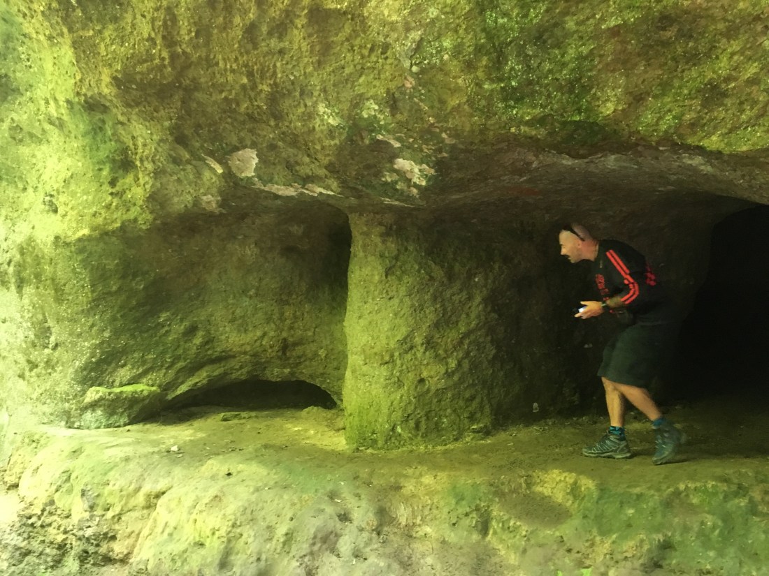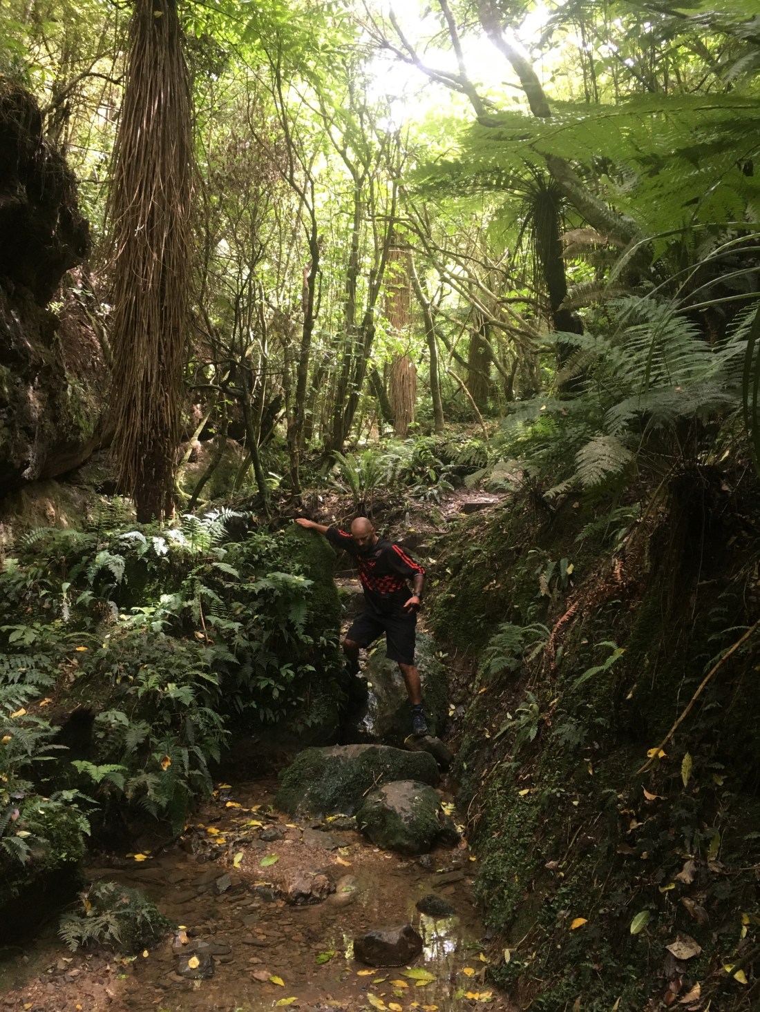 We left Oamaru and headed south to our next destination of Dunedin. We stopped along the way at a #brownsign – Trotters Canyon Gorge Walk. It was a really nice circular walk, along a river, past some Caves and up into native bush, to the top of the canyon, approx 2 hours. It helped clear my head nicely. Some parts of it were really steep, others rocky, and we were extremely pleased we had opted for walking boots and not our now customary daily footwear of flip-flops or as they call them out here, Jandels. (at last, a proper trail, not a graded footpath! It even had an option of very cool 30 vertical meter rock scramble to a view point at the very top of the ridge :bloke) .