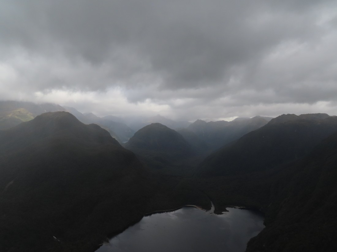 The last bit of the flight back in to Te Anau, the weather really closed in and the result was the most dark and moody landscape, so beautiful and atmospheric. We were quite blown away by the whole experience and we had a quiet drive to Milford Sound, contemplating what had just happened.