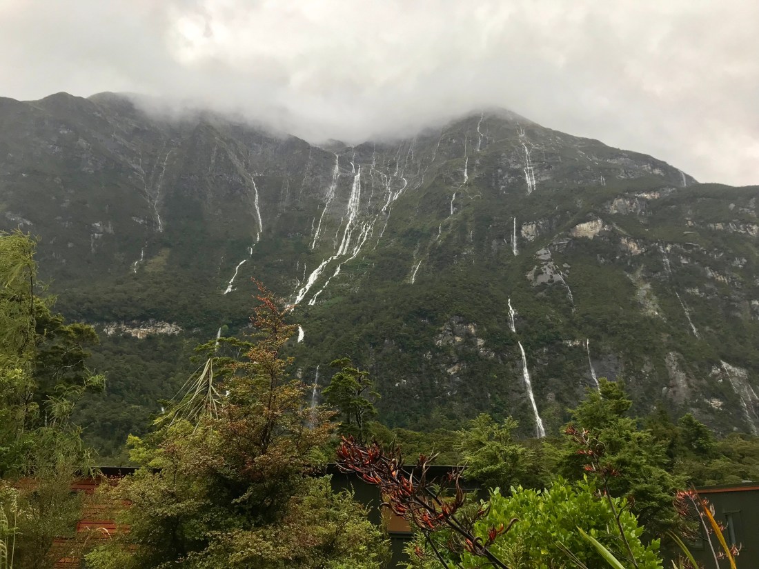 Arriving in Milford, it became apparent that apart from the Isite and a tiny petrol station, there was nothing else there apart from the ferry terminal and the airport (apparently the third busiest airport in NZ, amazing considering how small it is and how remote this area is). Thank goodness we booked ahead, the one campsite, Milford Lodge, was full to the brim, and so very cool. Extremely pretty, with excellent facilities, hands down the best yet. You really felt like you were in the rainforest, each vehicle had its own little bay, surrounded by mountains, with the sounds of the rainforest for company.