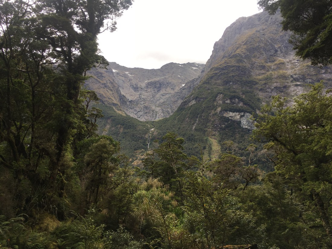 Two hours later we arrived in Milford, having driven along some of the most picturesque scenery ever, the mountains were really starting to dwarf us now. We stopped just after the tunnel, to let the traffic behind us pass, we were greeted with the cheekiest Kia, marching around the parking bay like he owned the place, trying to get in people’s cars (apparently the juvenile birds sometimes turn up in gangs and act like troublesome youth from the world over, being generally mischievous pinching food and car parts! :bloke) .