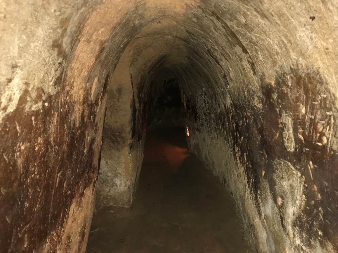 There was a 100 metre stretch of tunnel, widened as mentioned previously, that we could walk through. When I say walk through, it was more of a crouch and was so tight blokes shoulders were touching the wall on either side. We were warned that if anyone in the group was claustrophobic or had a heart condition or knee issues, we should either reconsider or try it in stages. The tunnel had exit points every 20 metres as it went increasing lower the further you went. I was pretty impressed with bloke as he had previously said he wouldn’t do it, but he gave it a go. In fact most of the group did, with only a couple (3 actually :bloke) opting not to try it, and I can’t say I blame them. I did the first 20 metres and that hurt my knees crouching down (and I’m only 5ft 4in on a tall day) but several of the group managed the whole thing. It’s extremely tight in there and dark despite the lights they have recently installed, it gives you some idea of what these tunnels feel like. I can’t imagine what it must have been like for the poor families living in them for years, let alone the men fighting from them. It was not a comfortable thing to do but certainly an interesting thing to experience.