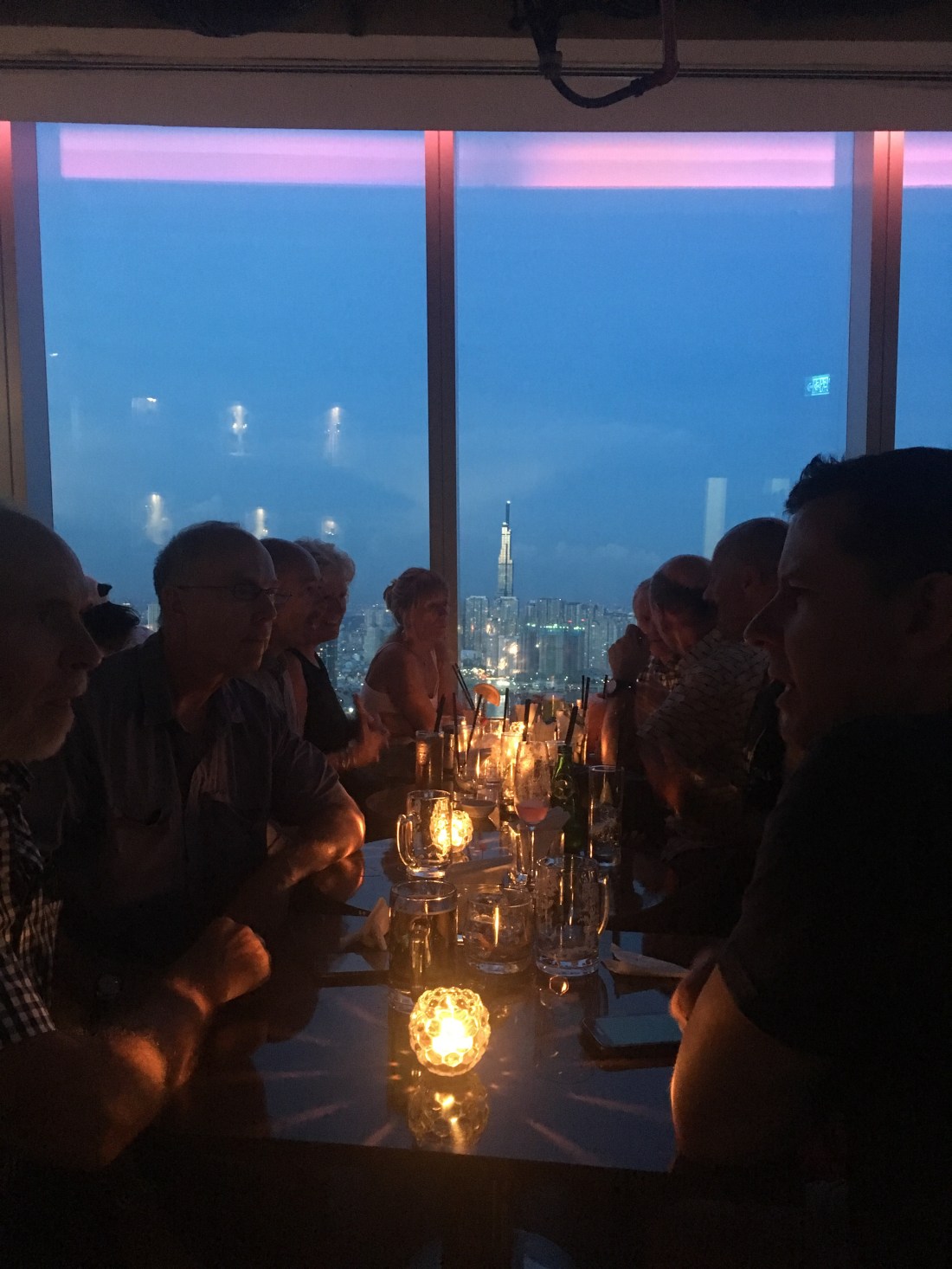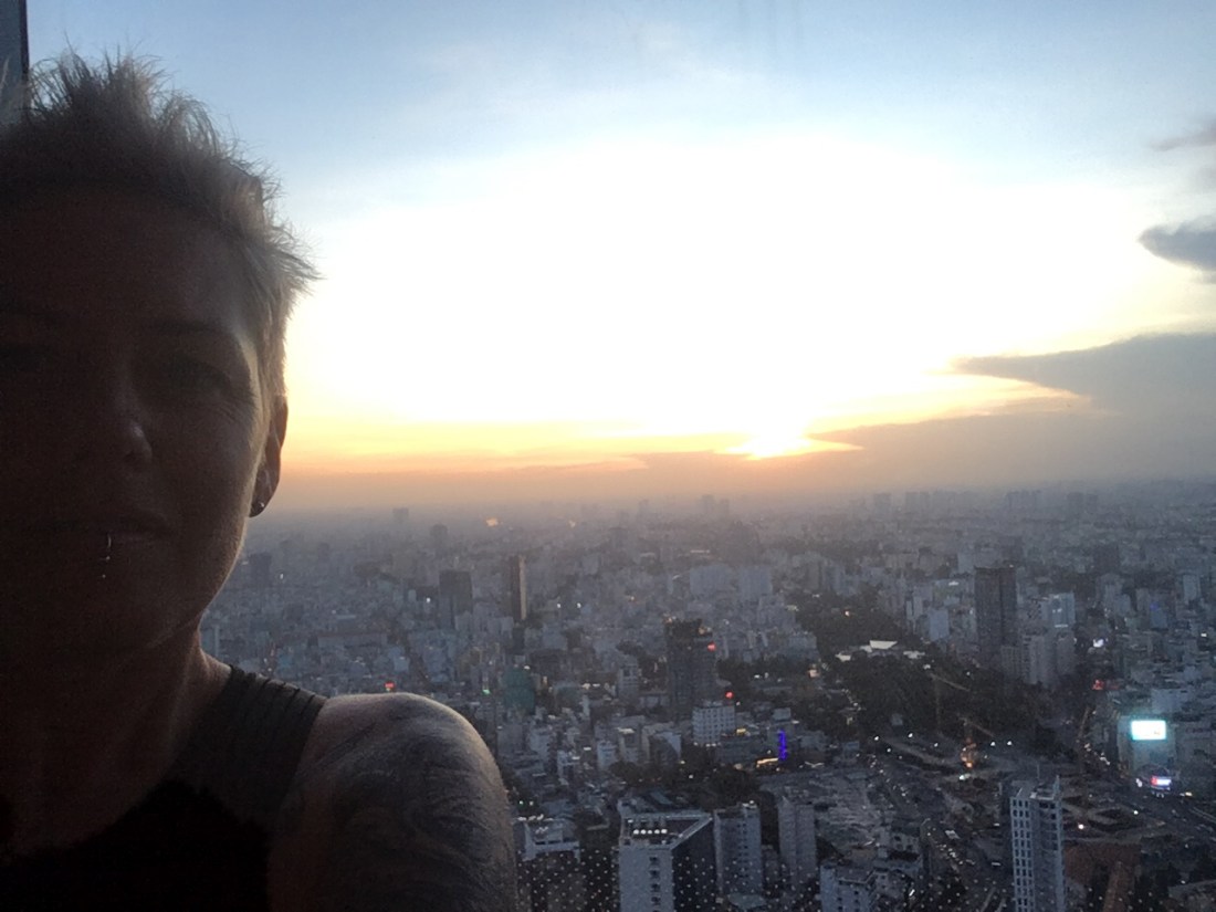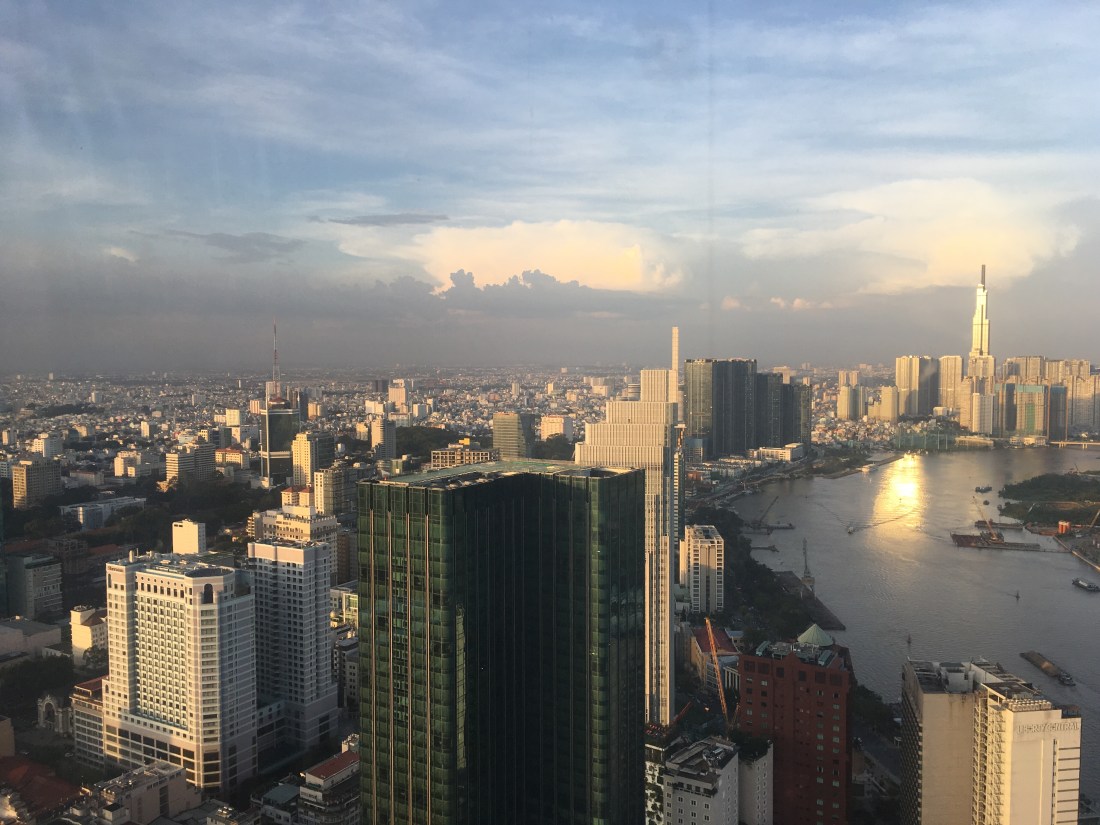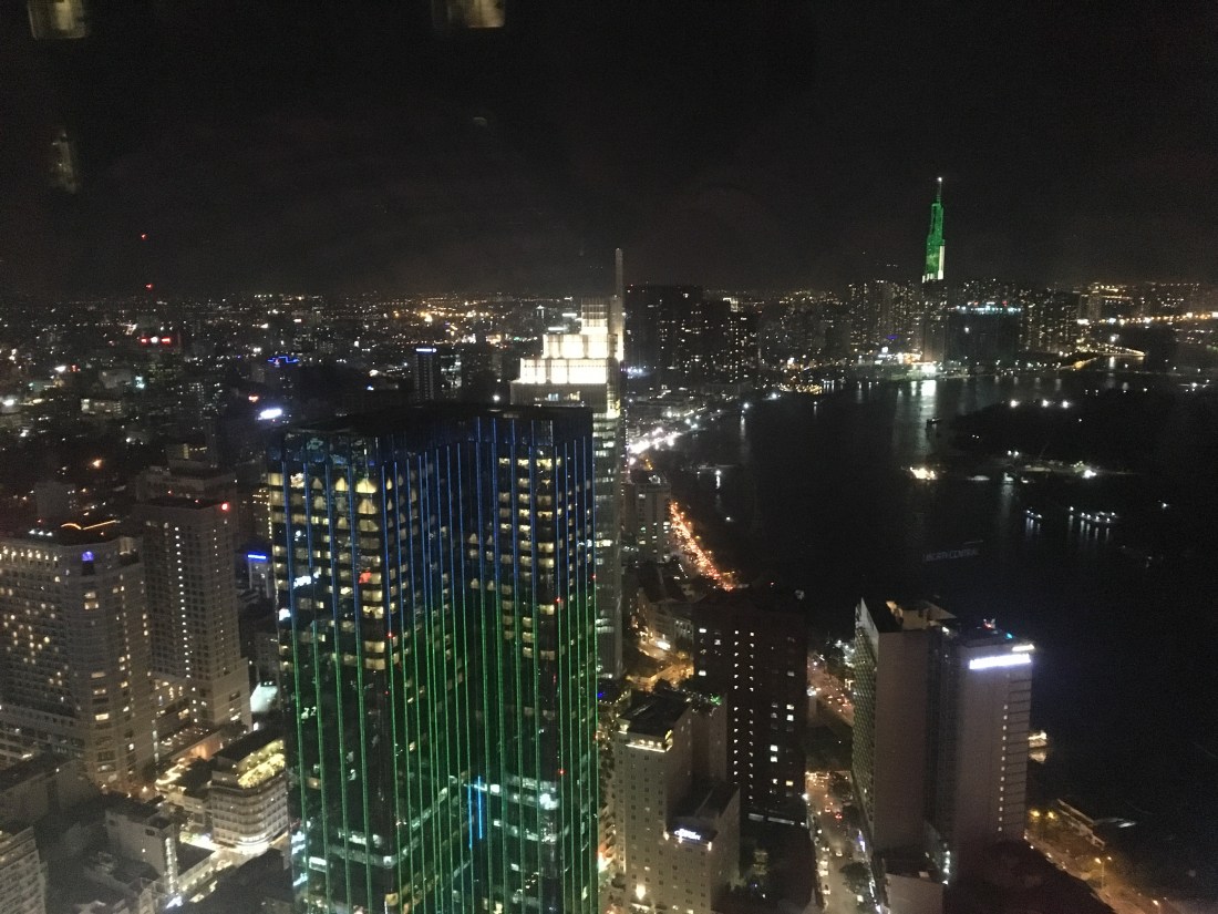 The group decided to take our guides advice, and go to the second tallest building, the Bitexco Financial Tower, up to the Eon Heli Bar on the 52nd floor, by the heli-pad, and watch the sunset and enjoy the 360 deg view of the city, whilst drinking a cocktail (several cocktails :bloke). The views really were amazing, especially during and after sunset. In the distance you can see the tallest building, standing at 86 floors high.