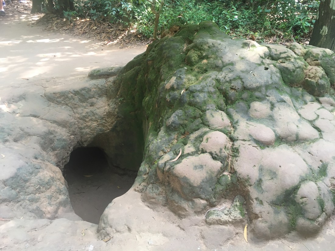 There was a 100 metre stretch of tunnel, widened as mentioned previously, that we could walk through. When I say walk through, it was more of a crouch and was so tight blokes shoulders were touching the wall on either side. We were warned that if anyone in the group was claustrophobic or had a heart condition or knee issues, we should either reconsider or try it in stages. The tunnel had exit points every 20 metres as it went increasing lower the further you went. I was pretty impressed with bloke as he had previously said he wouldn’t do it, but he gave it a go. In fact most of the group did, with only a couple (3 actually :bloke) opting not to try it, and I can’t say I blame them. I did the first 20 metres and that hurt my knees crouching down (and I’m only 5ft 4in on a tall day) but several of the group managed the whole thing. It’s extremely tight in there and dark despite the lights they have recently installed, it gives you some idea of what these tunnels feel like. I can’t imagine what it must have been like for the poor families living in them for years, let alone the men fighting from them. It was not a comfortable thing to do but certainly an interesting thing to experience.